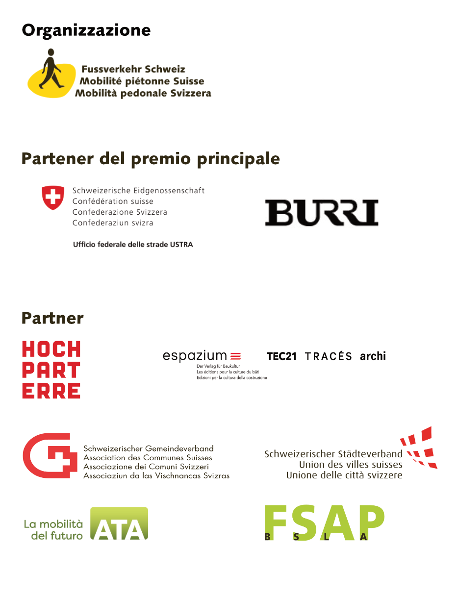 Il concorso nazionale viene organizzato da Mobilità pedonale Svizzera, è sostenuto dall’Ufficio federale delle Strade (USTRA), Burri public elements AG, ATA e da altri partner.